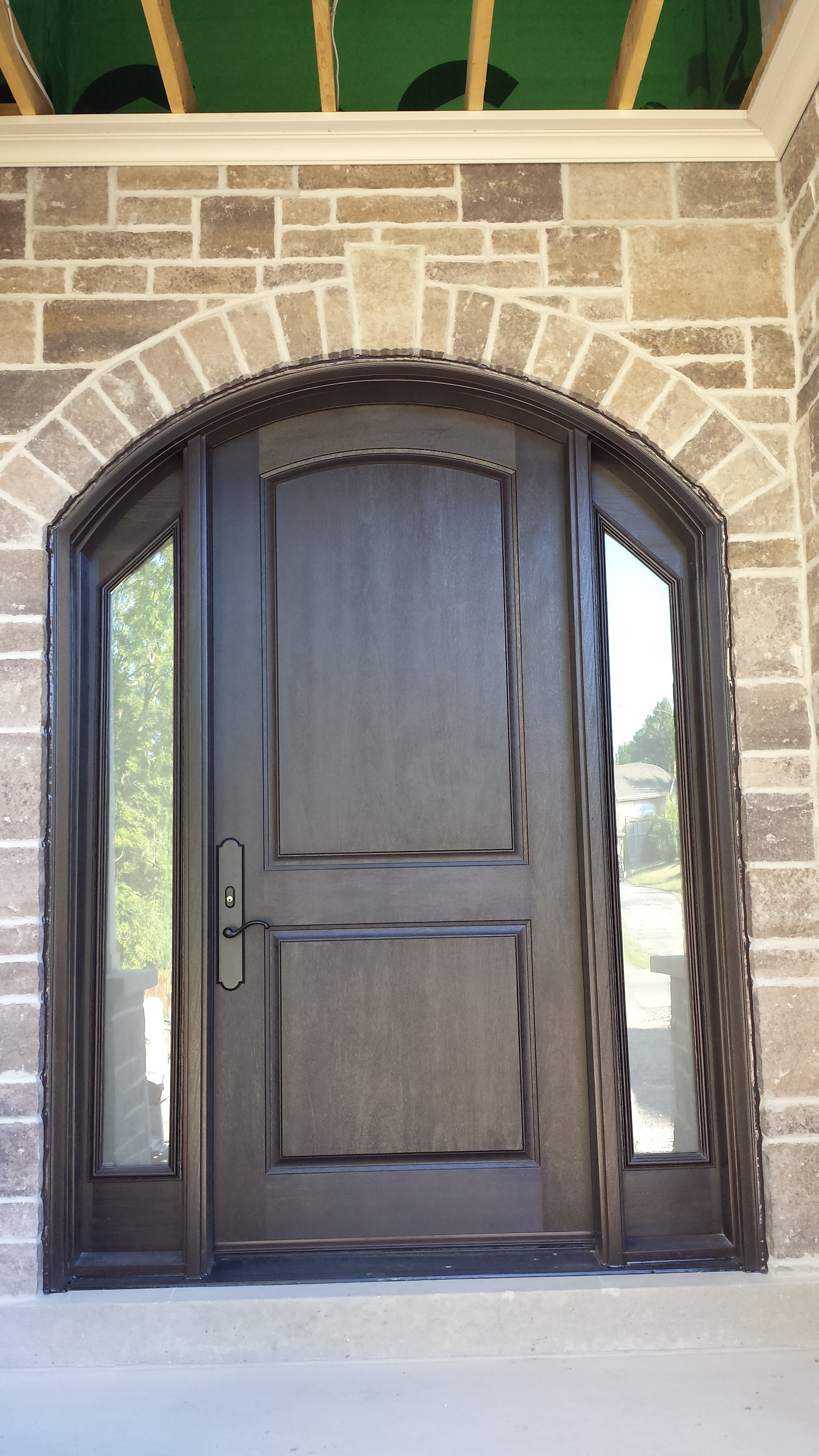 Fiberglass Arch Door with Sidelites and matching tansom interior look