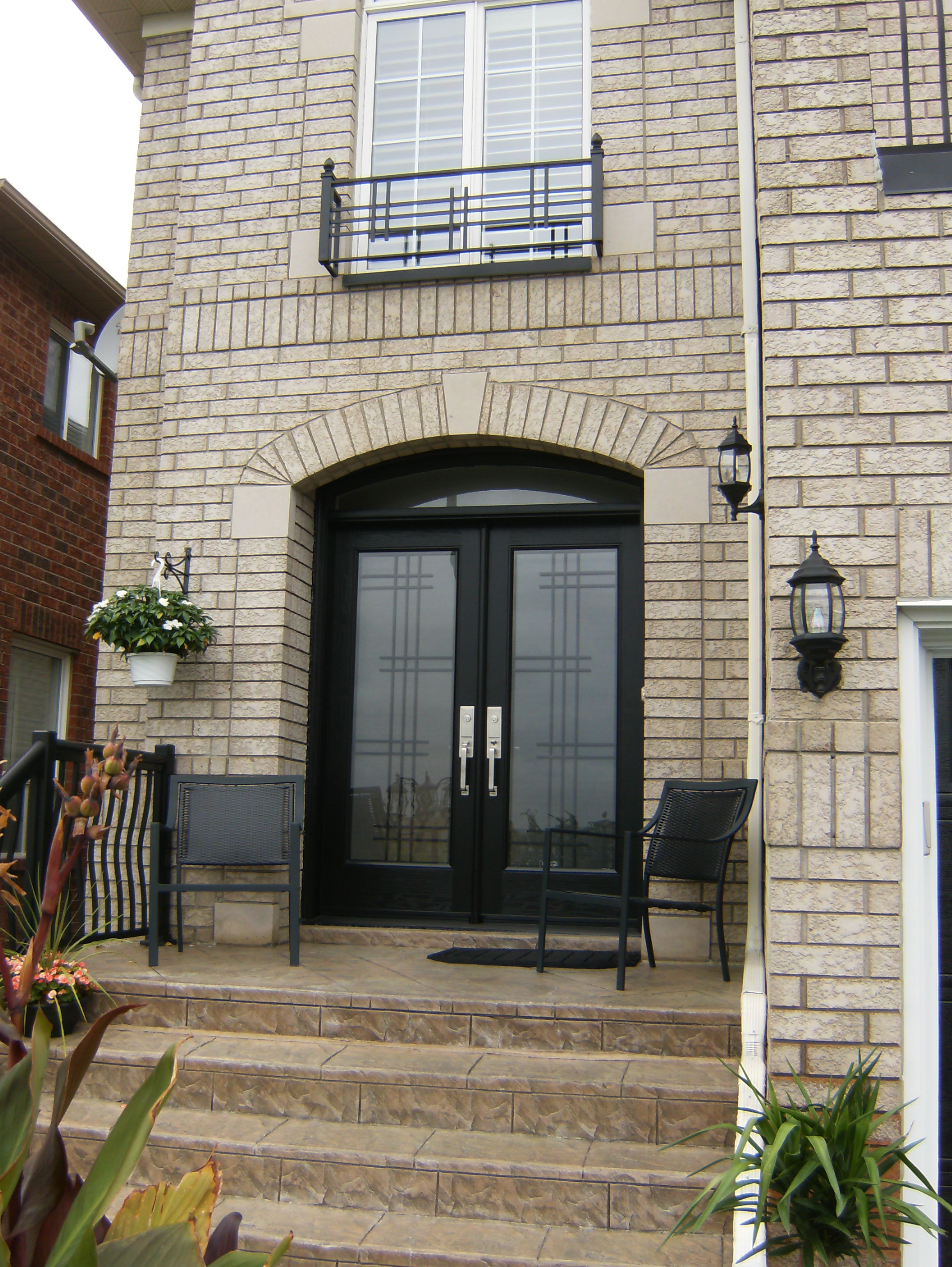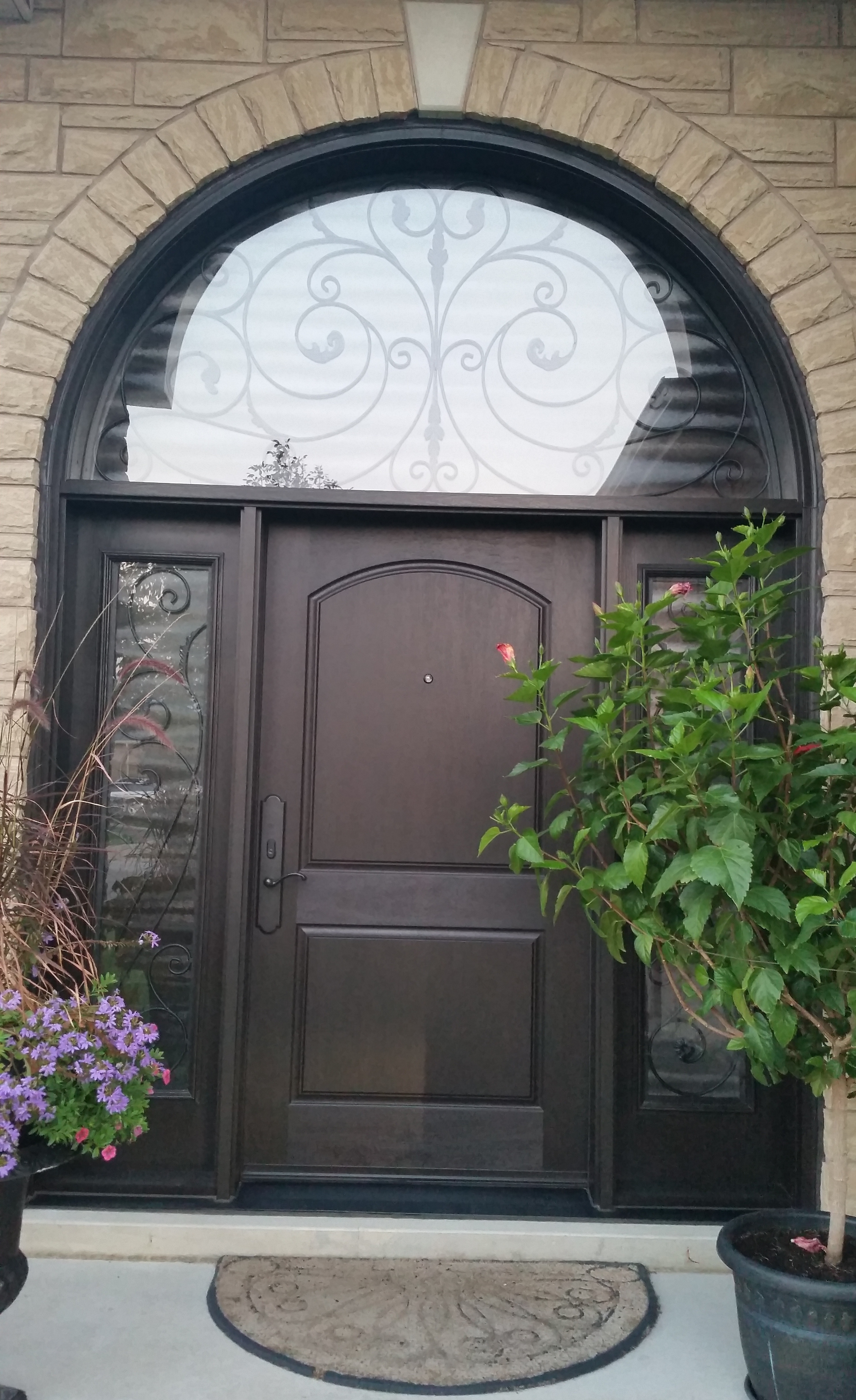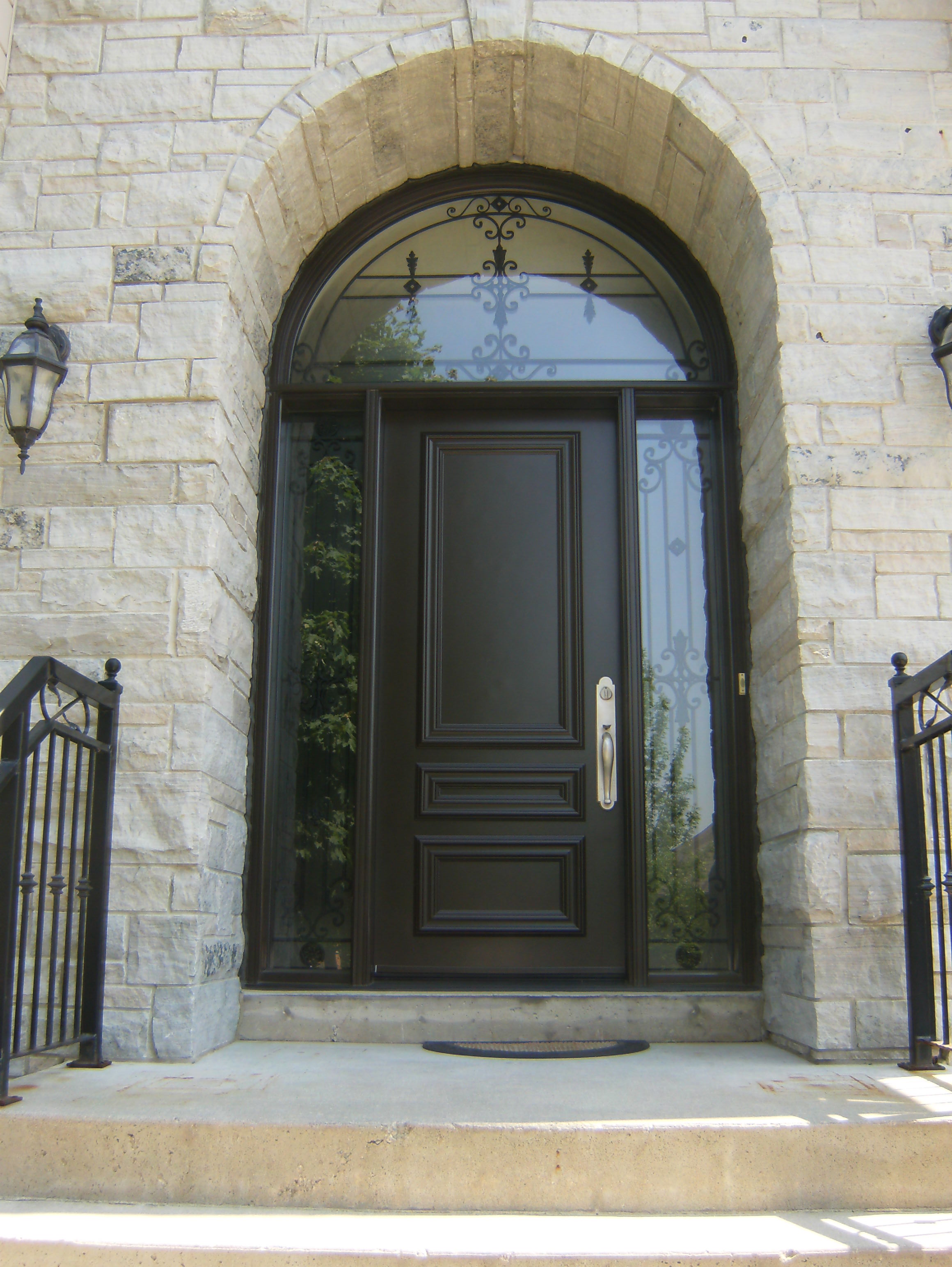 Fiberglass Arch Door with outside grill and filled Sidelites