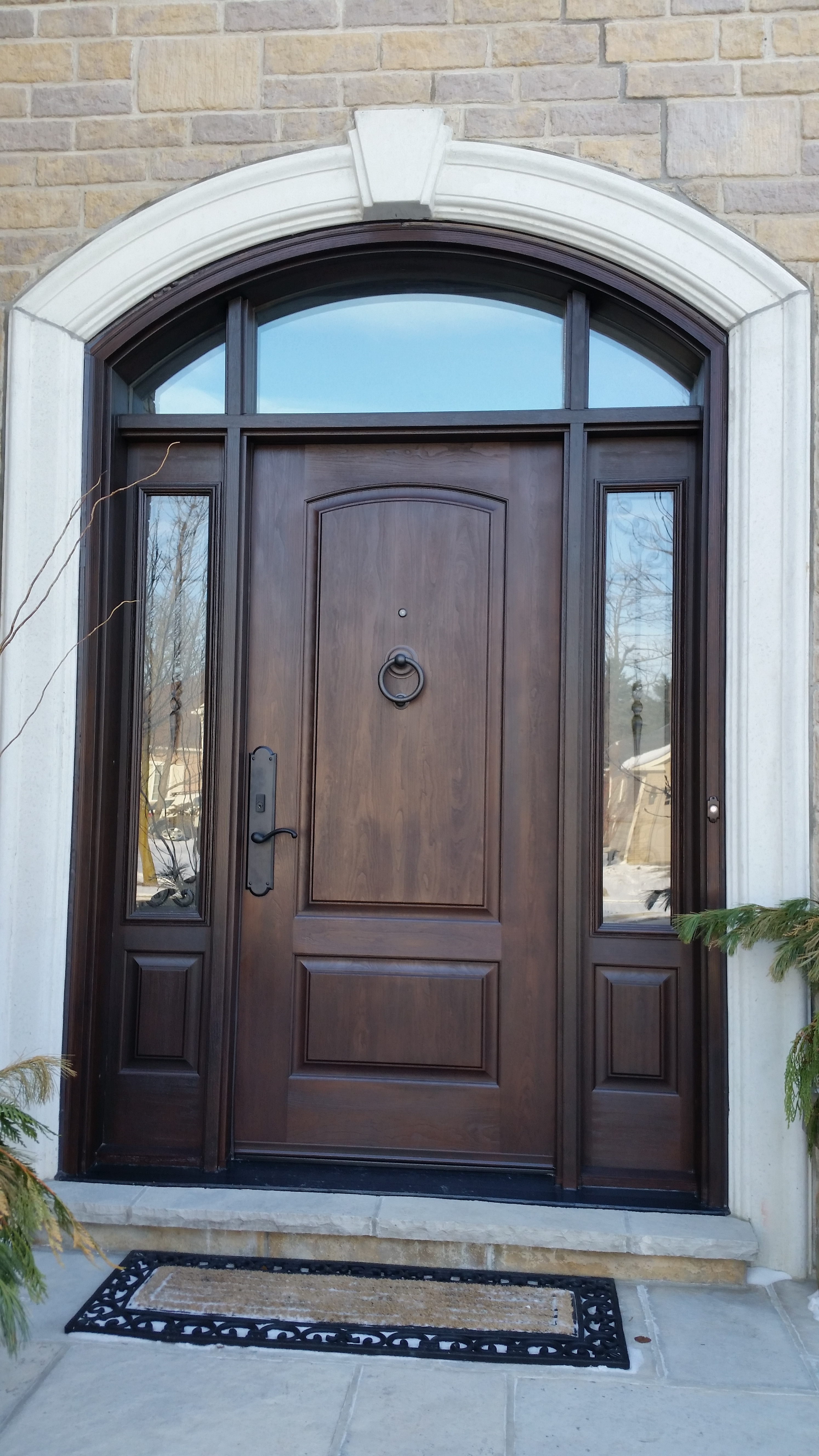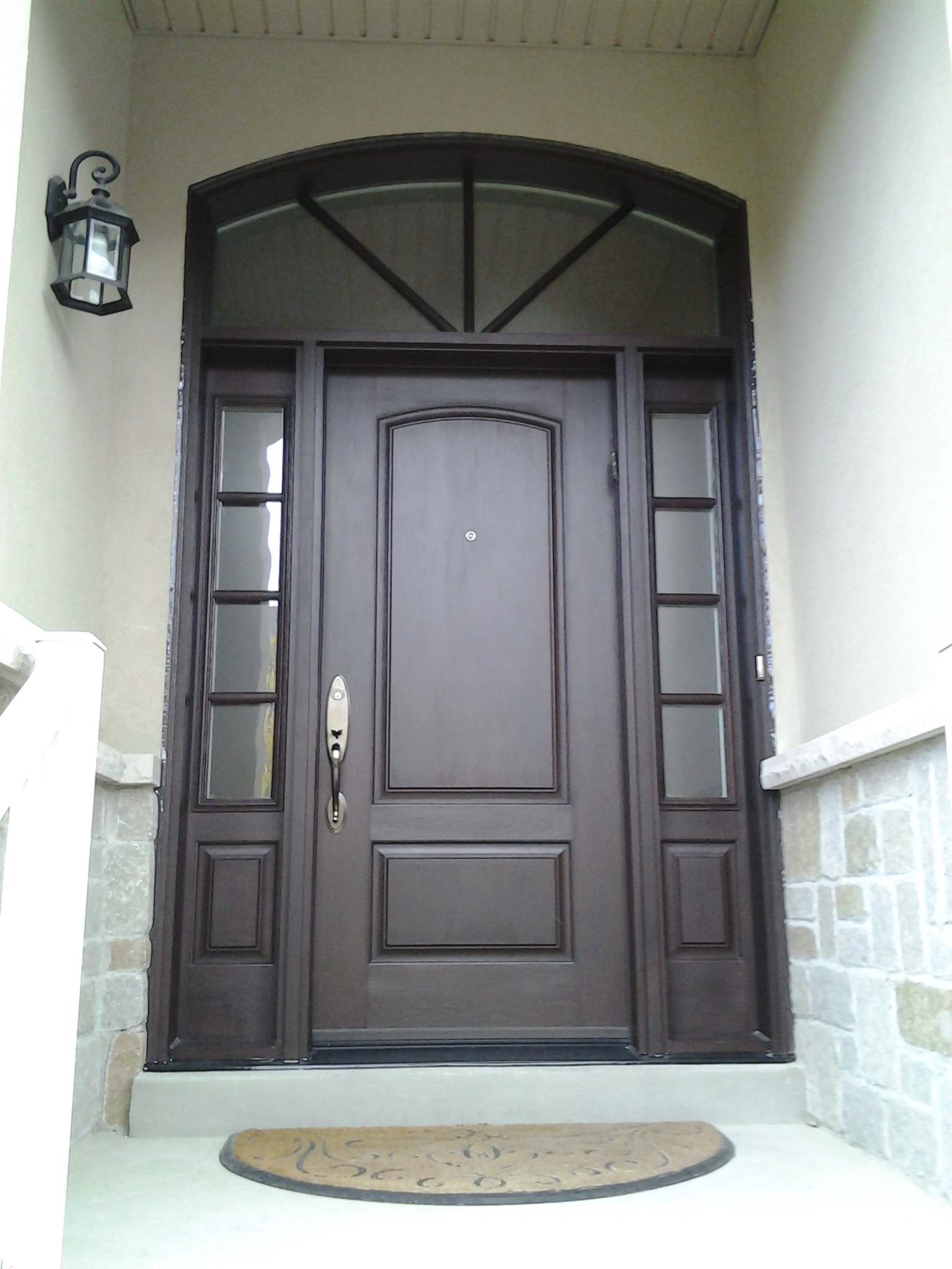 8 ft Mastergrain Fiberglass Doors with 2 sidelites and custom arch transom