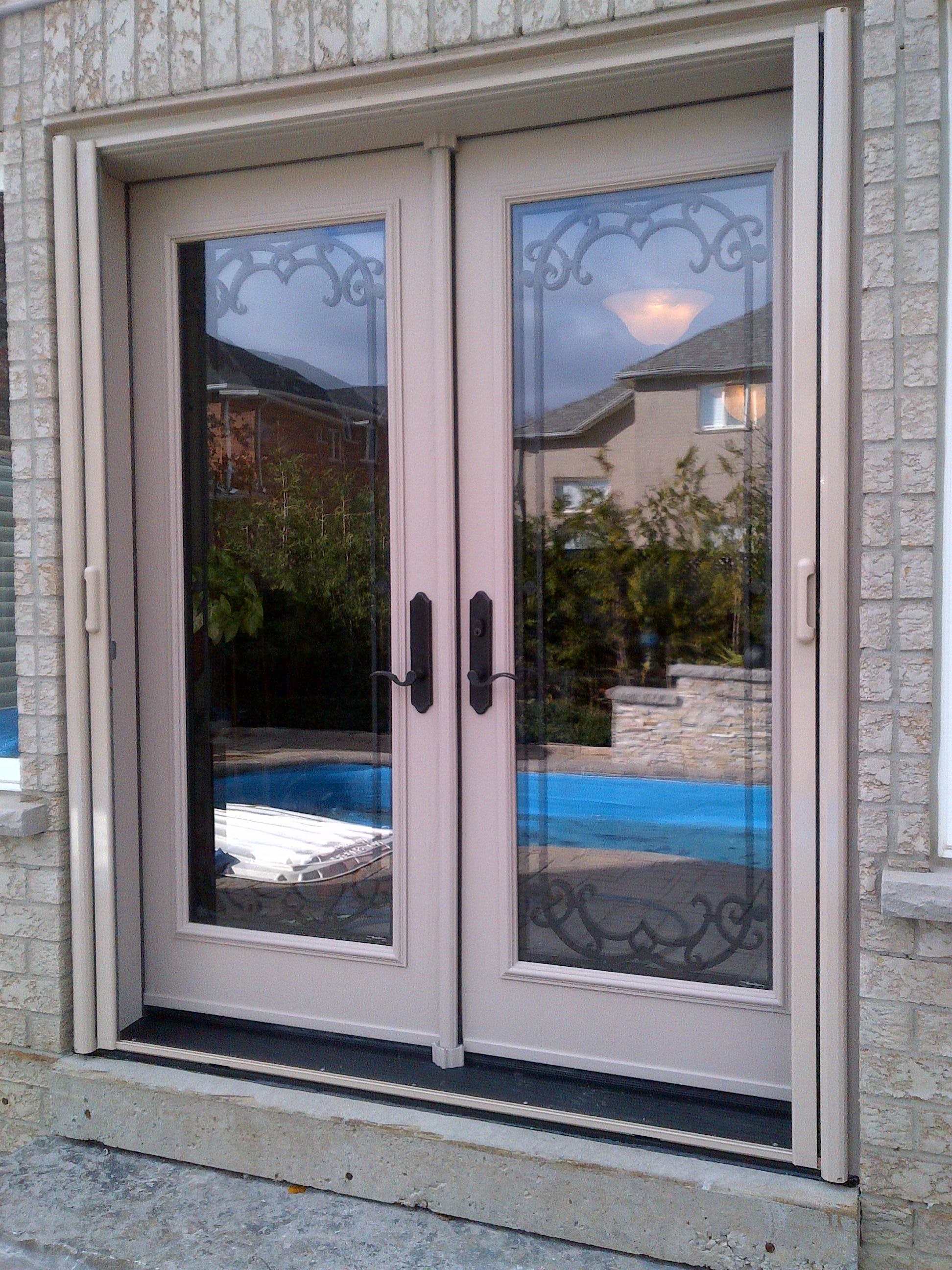 Double Fiberglass Door with beautiful Miliano Serenne Wrought iron Design and transom