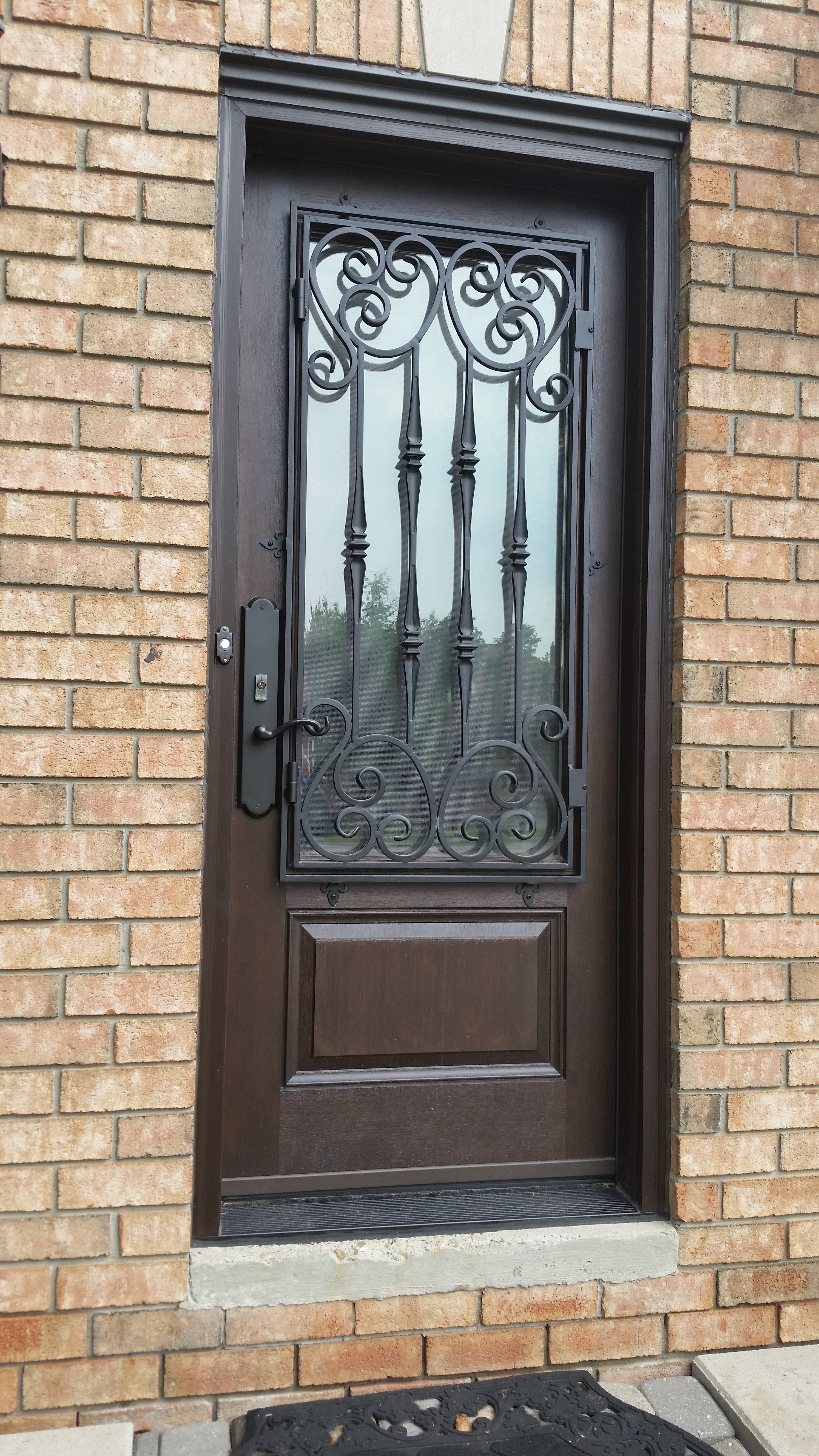Fiberglass door with Wrought Iron in panel and transom