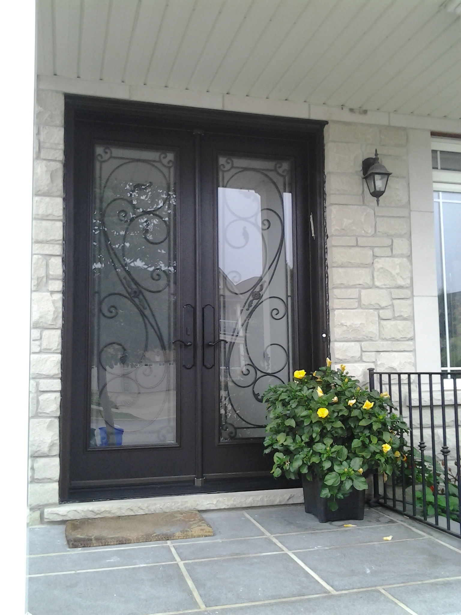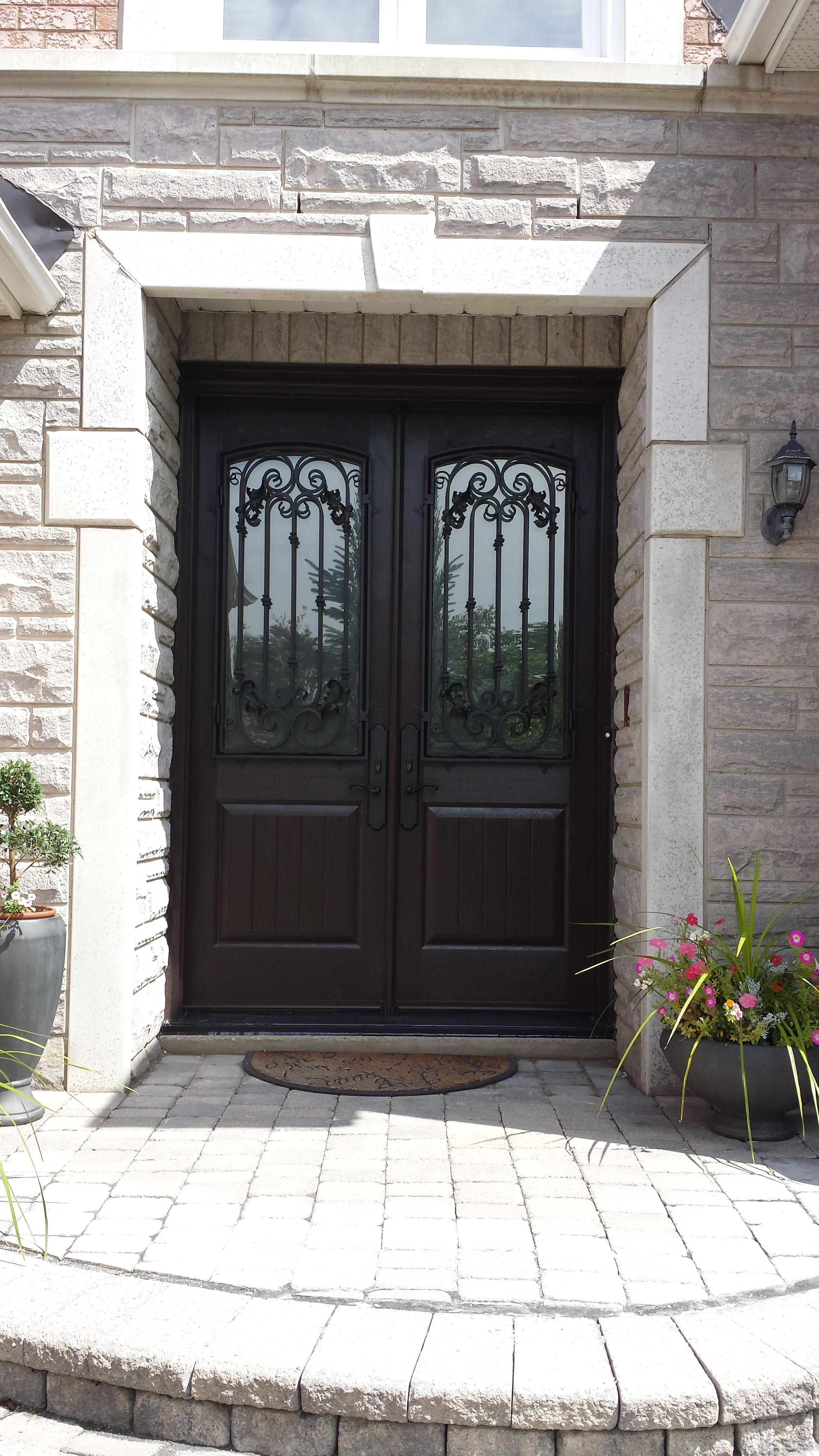 Double Fiberglass door with 2 Sidelites and Custom Wrought Iron Design