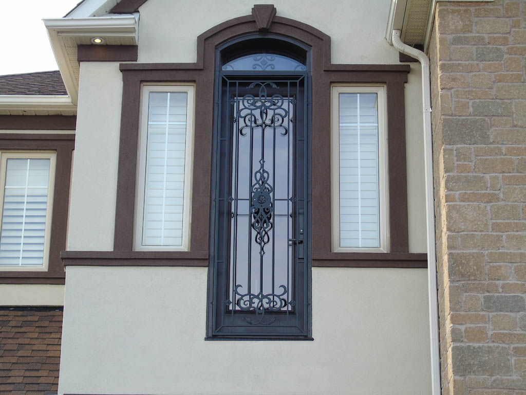 8 ft steel door with executive molding wrought iron and matching round transom