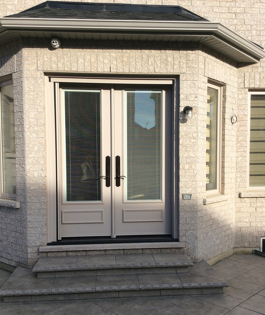 8 ft Steel Garden Door with executive mouldings and builtin mini blinds